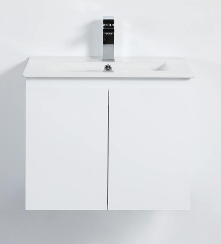 Size: 23.6" x18"x19.7" Wall Mount PVC Vanity, Two Door Glossy White Color with Ceramic Top.