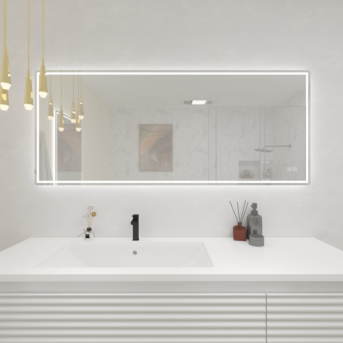 72" Deco LED Mirror with Touch Sensor, Auto-On, Heated Anti-Fog, Dimmer