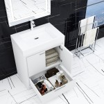 The BLUME BATH QUEEN Collection is one of the most elegant modern Bathroom Vanities available in the market today. This 36 inches single sink freestanding model comes with a solid surface one piece sink. The cabinet is made out of water-resistant High-Density Fiber (HDF) material which is the enhanced version of known MDF. All the drawers systems are Smart Slide Drawer System adds elegance to opening and closing drawer features. Perfection of its technology ensures silent and smooth motion which also provides long-lasting cabinet life. Blume Bath products are MADE IN TURKIYE..